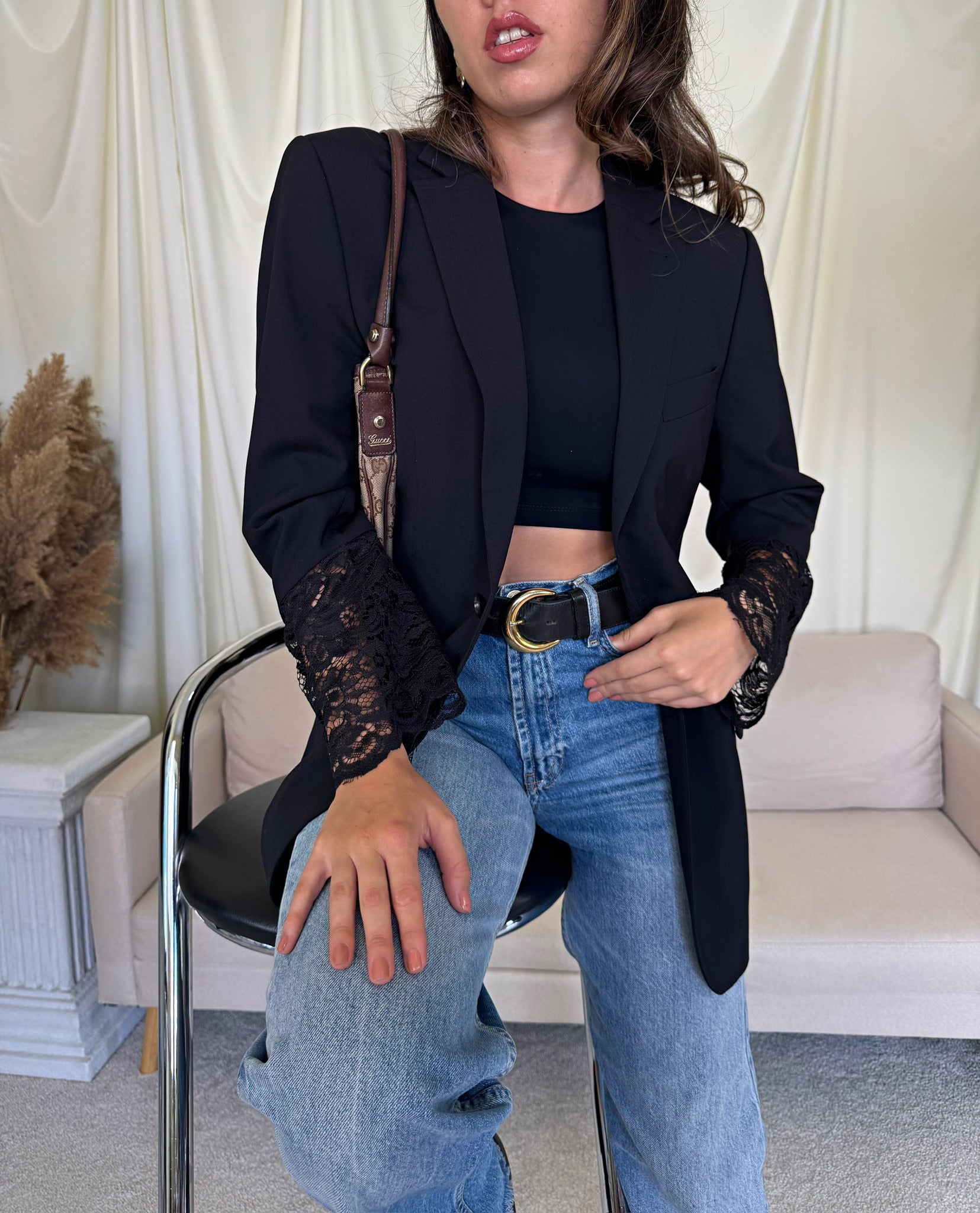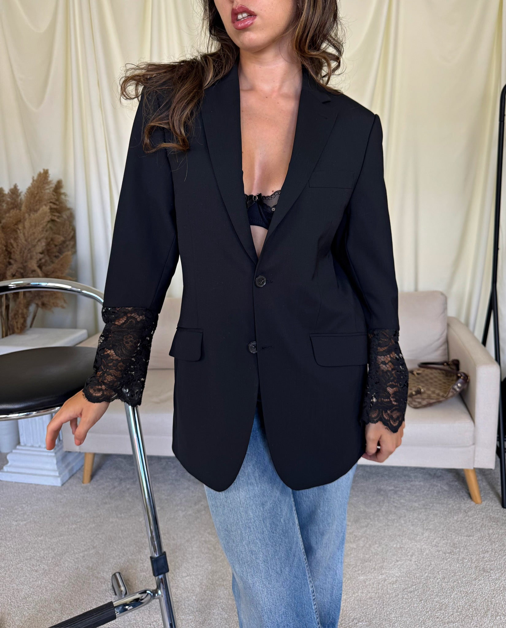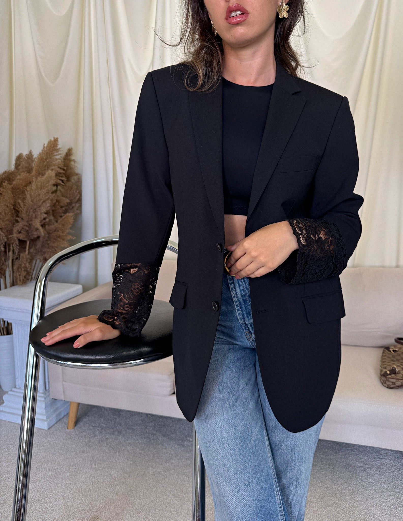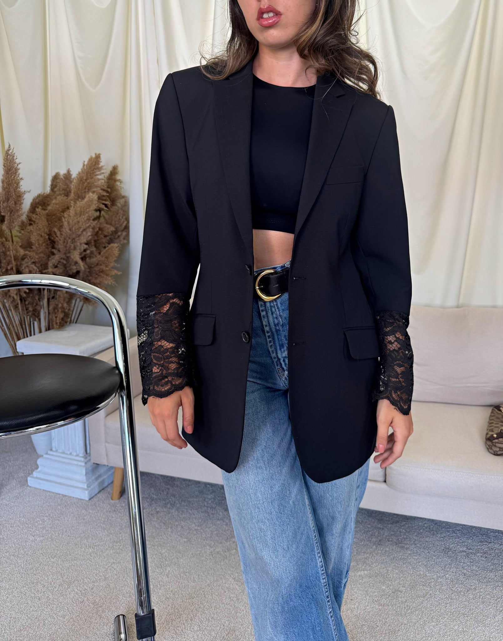 Dimensiuni si marime: S ; blazer fits oversized (modelul poarta marimea S in general).